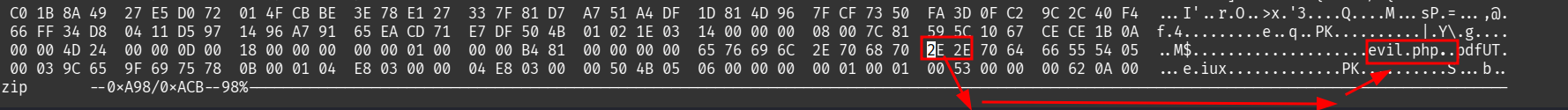 Pero cuando el backend extrae el archivo y lo pasa al sistema de archivos — que por debajo usa funciones escritas en C — ese \0 es interpretado como fin de cadena y el archivo queda guardado físicamente como evil.php. Esa es exactamente la inconsistencia que explotamos — el validador y el sistema de archivos leyeron los mismos bytes y llegaron a conclusiones completamente distintas.