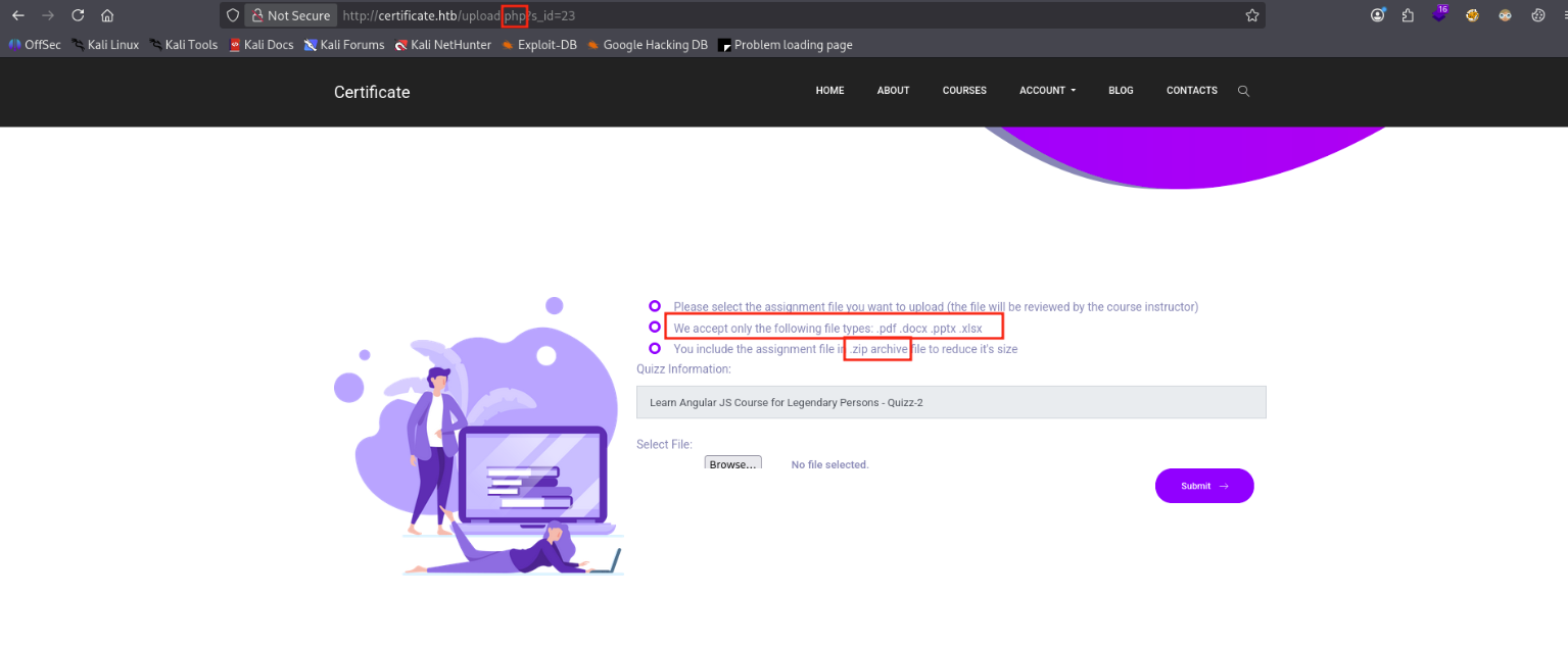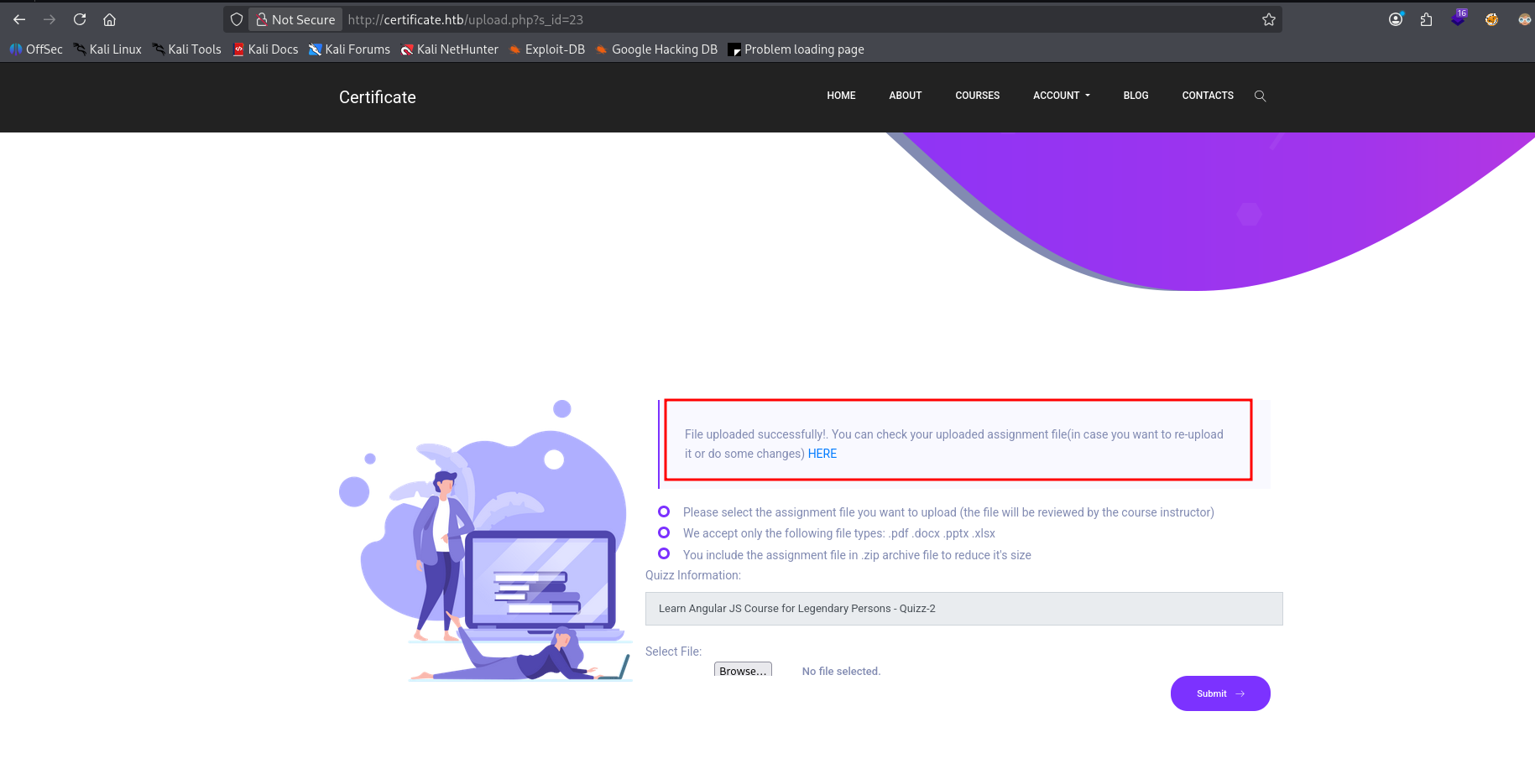Para demostrar esto en la práctica, usé la máquina Certificate de HackTheBox.