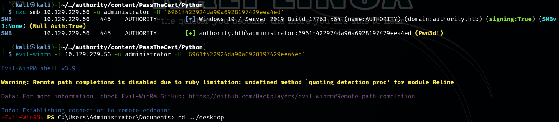 → Solicitar certificado con UPN=administrator@authority.htb